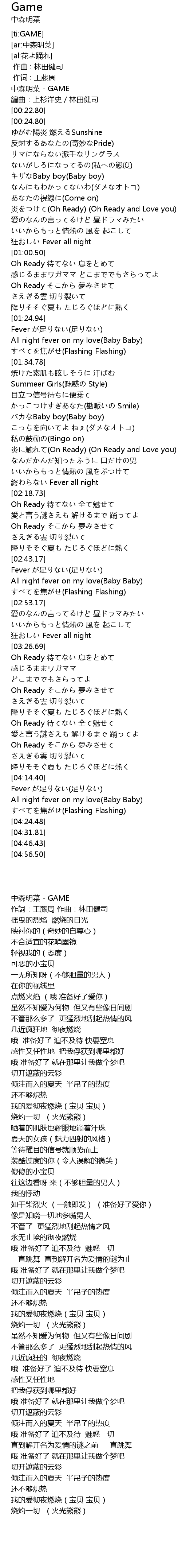 | [00:00.00] | zhōng sēn míng cài GAME |
