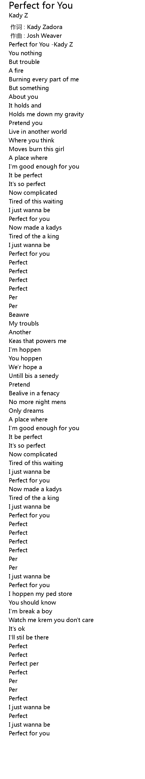 | [00:00.841] | Perfect for You Kady Z |