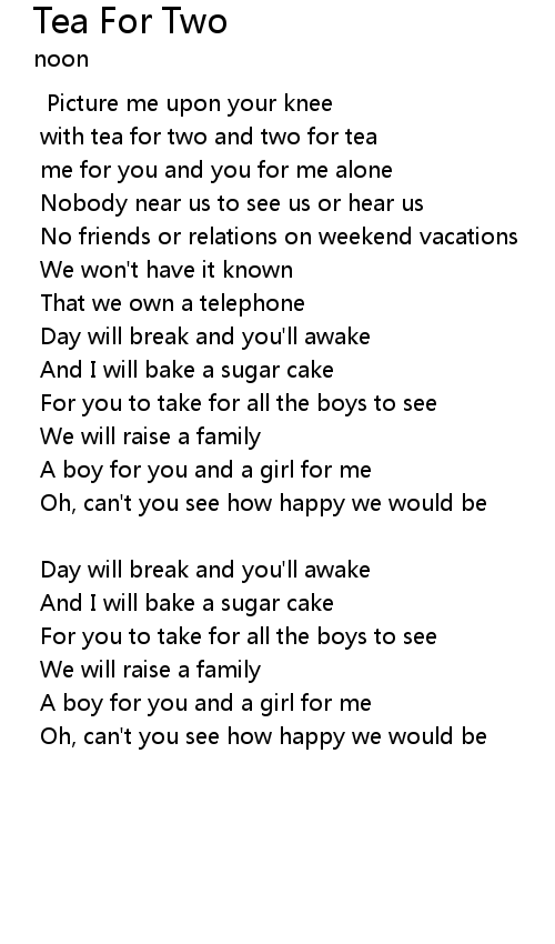 with tea for two and two for tea |
