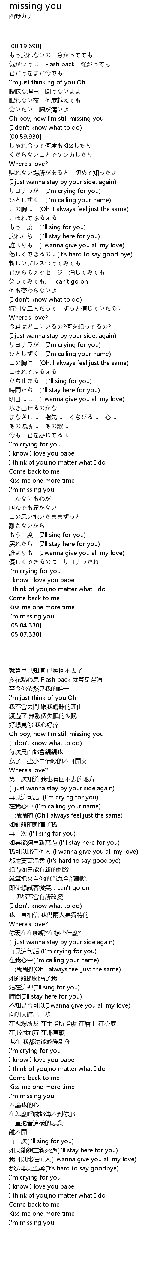 | [05:00.670] | I' m missing you |