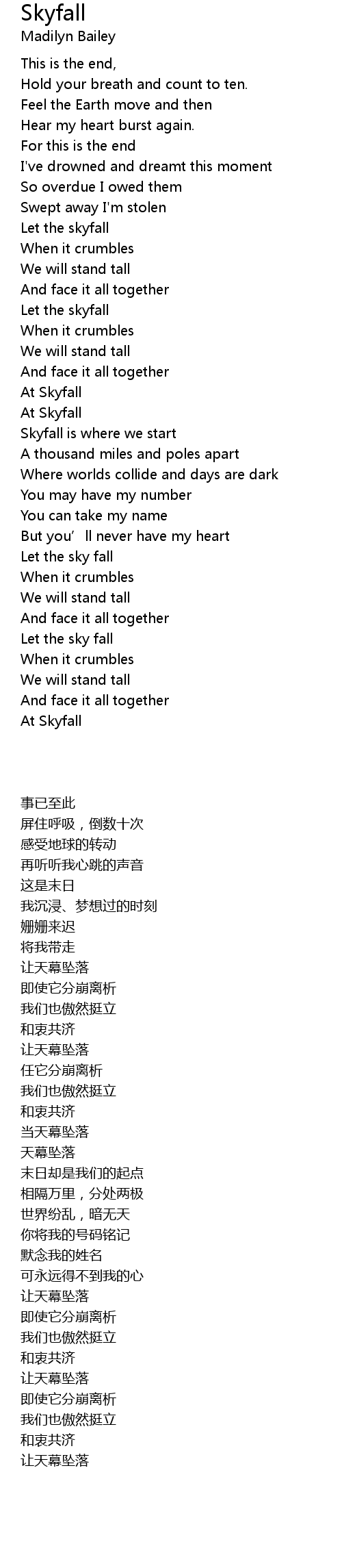| [01:46.824] | Skyfall is where we start |