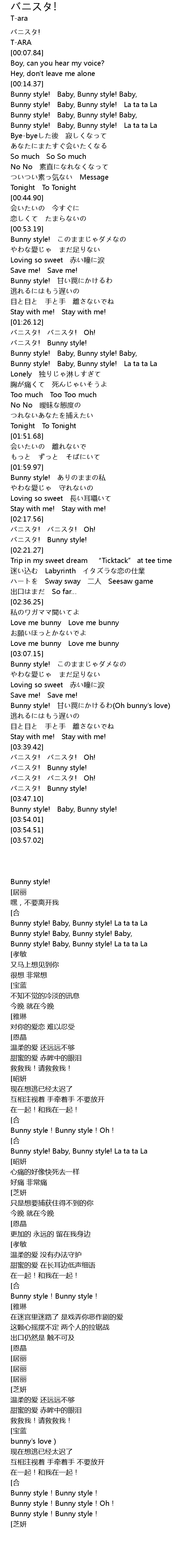 | [03:24.07] | Bunny style! 甘い罠にかけるわ(Oh bunny's love) |