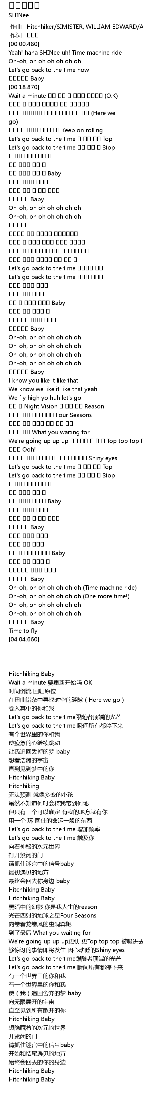 | [00:01.850] | Yeah! haha SHINee uh! Time machine ride |