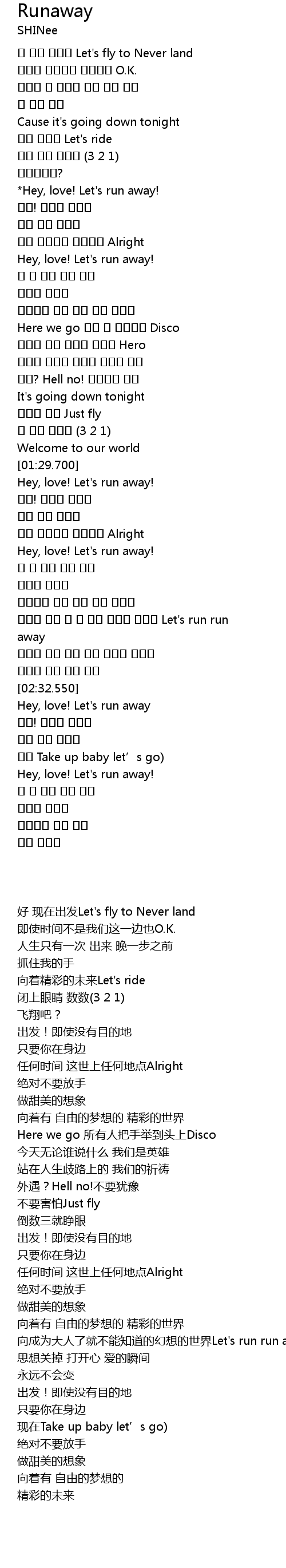 | [01:31.900] | Hey, love! Let' s run away! |
