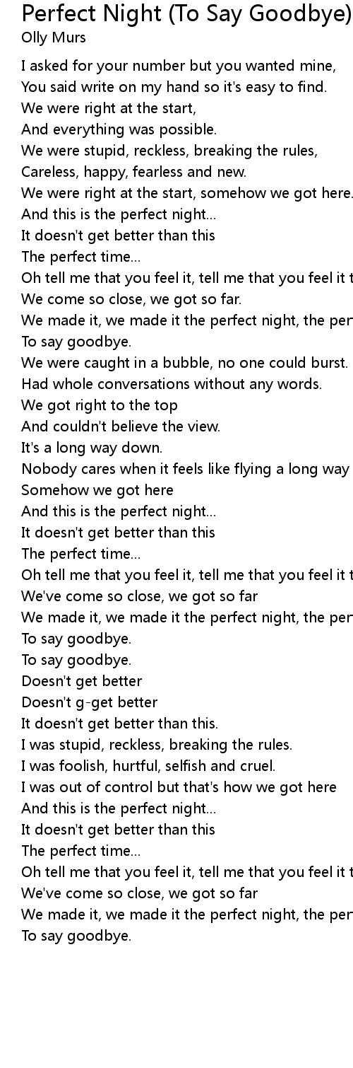 We made it, we made it the perfect night, the perfect time |