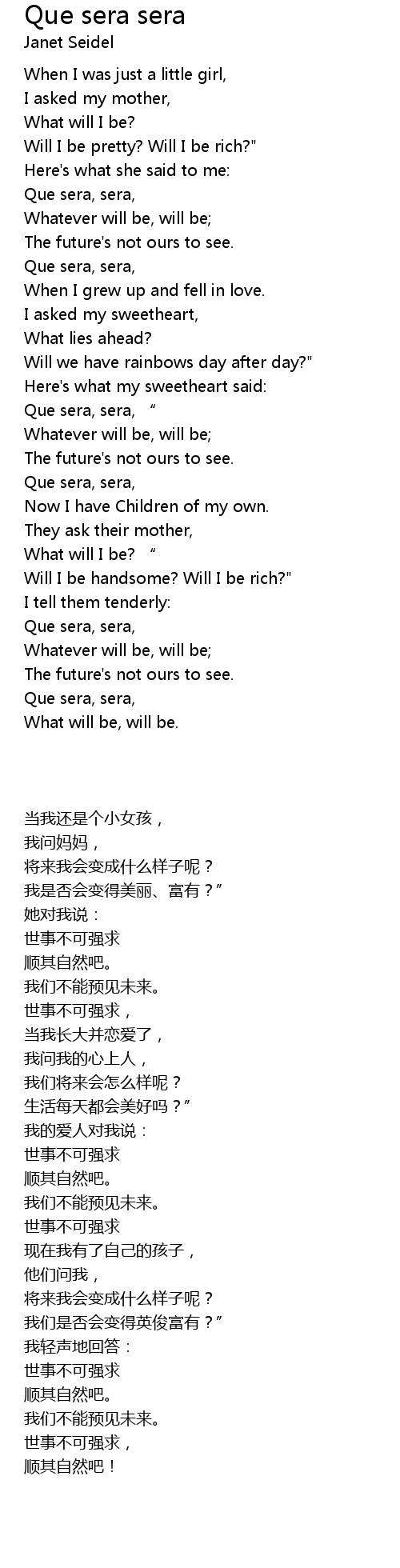 | Song | Que sera sera |