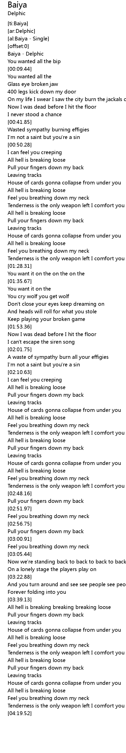 | [00:00.87] | Baiya - Delphic |
