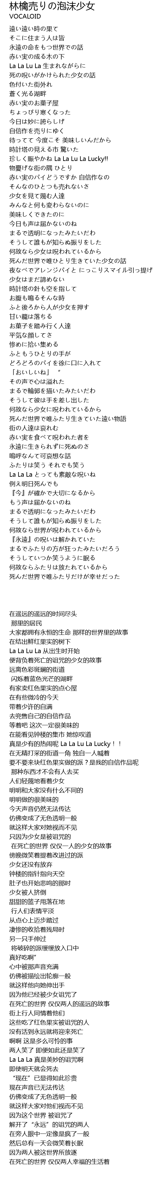 | [04:06.94] | La La La とっても素敵な呪いね |