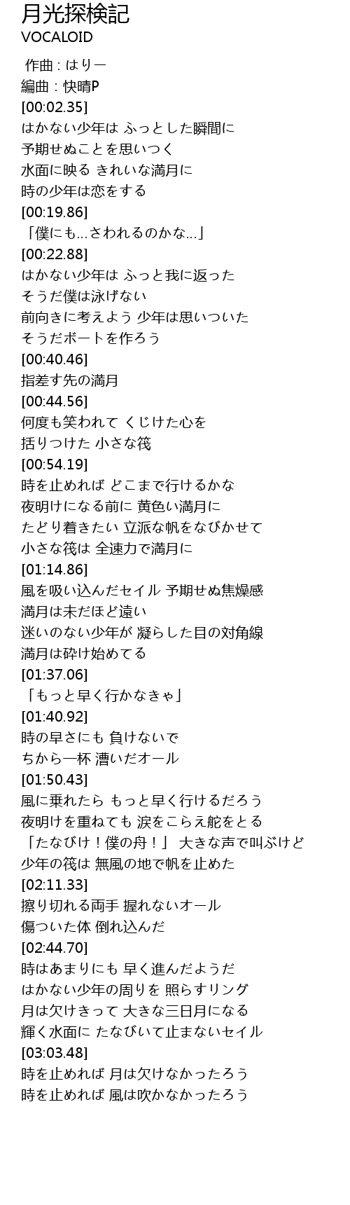 | [01:33.93] | 満月は砕け始めてる |