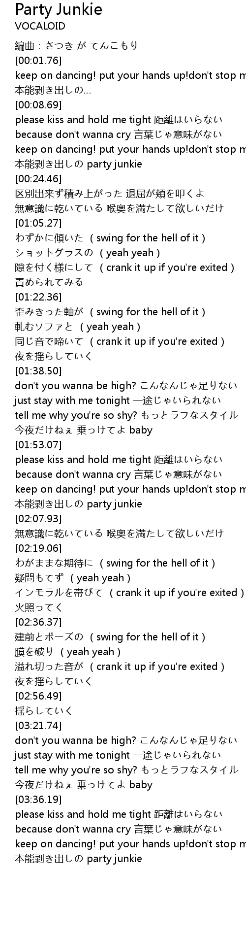 | [03:22.19] | don't you wanna be high? こんなんじゃ足りない |