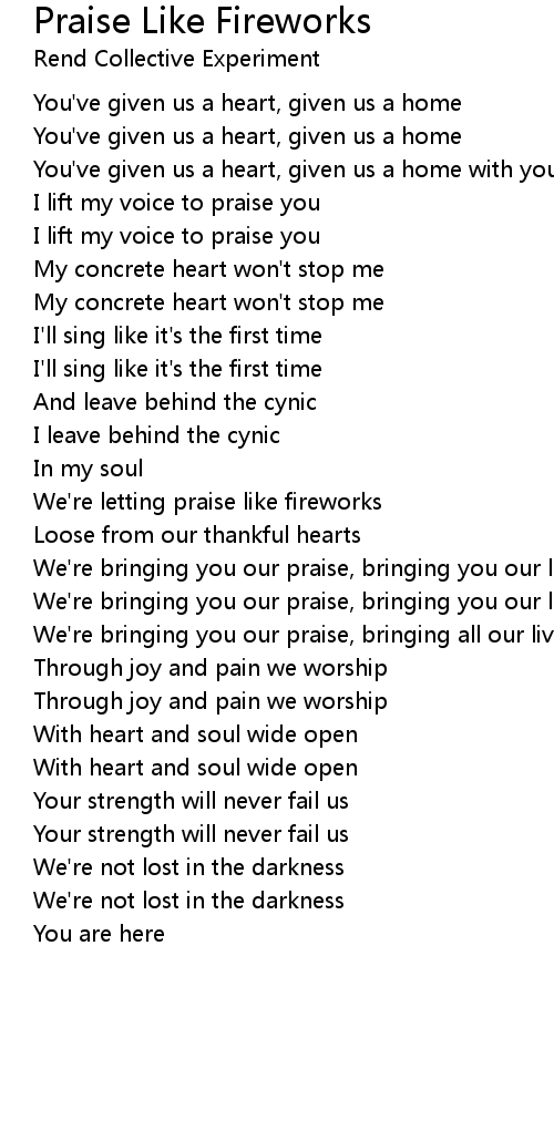 Praise Like Fireworks Lyrics