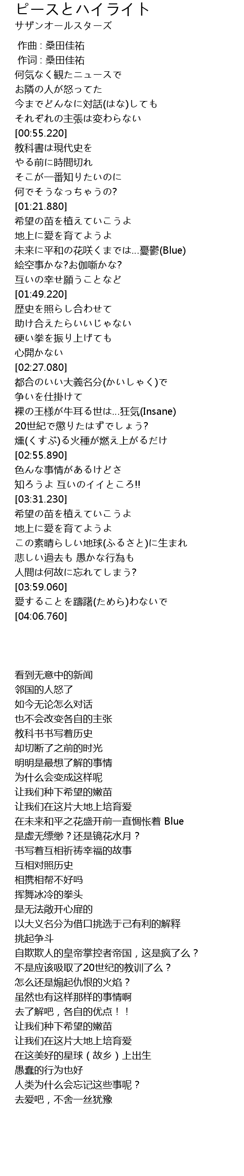 | [00:01.00] | 作词 : 桑田佳祐 |