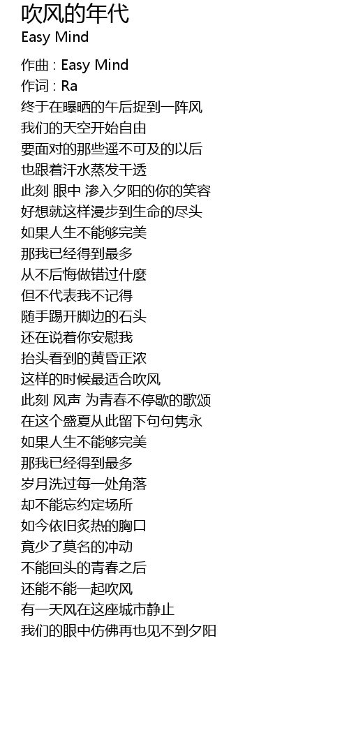 | Song | 吹风的年代 |