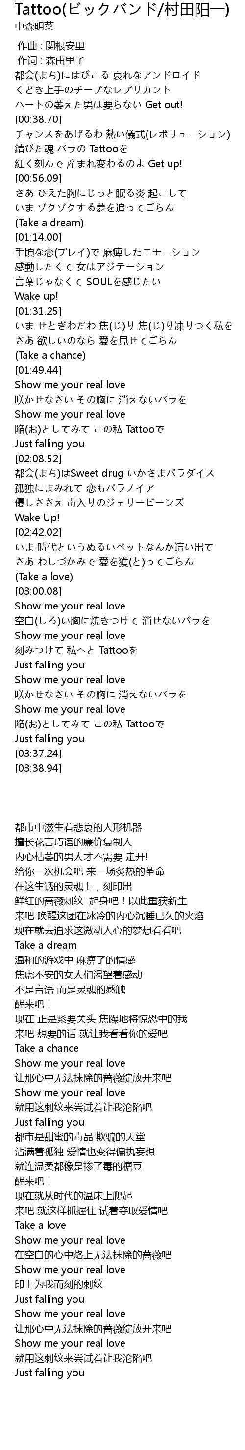 | [02:01.94] | 陥(お)としてみて この私 Tattooで |