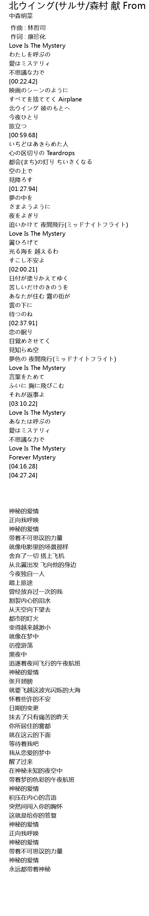 | [00:46.84] | 北ウイング 彼のもとへ |