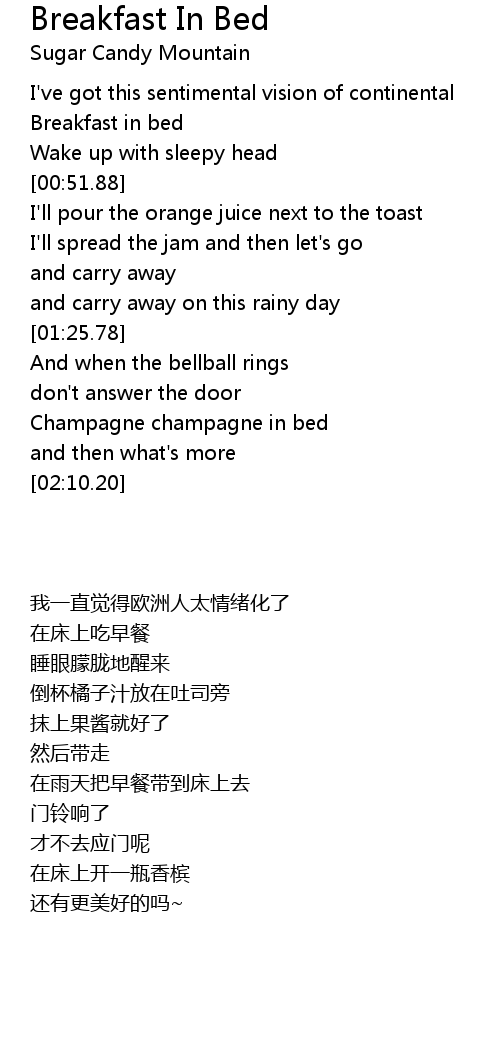 | [00:44.01] | Breakfast in bed |