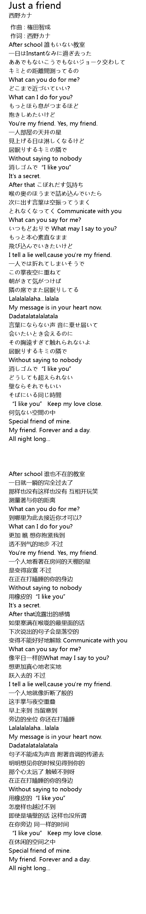 | [01:03.860] | You' re my friend. Yes, my friend. |