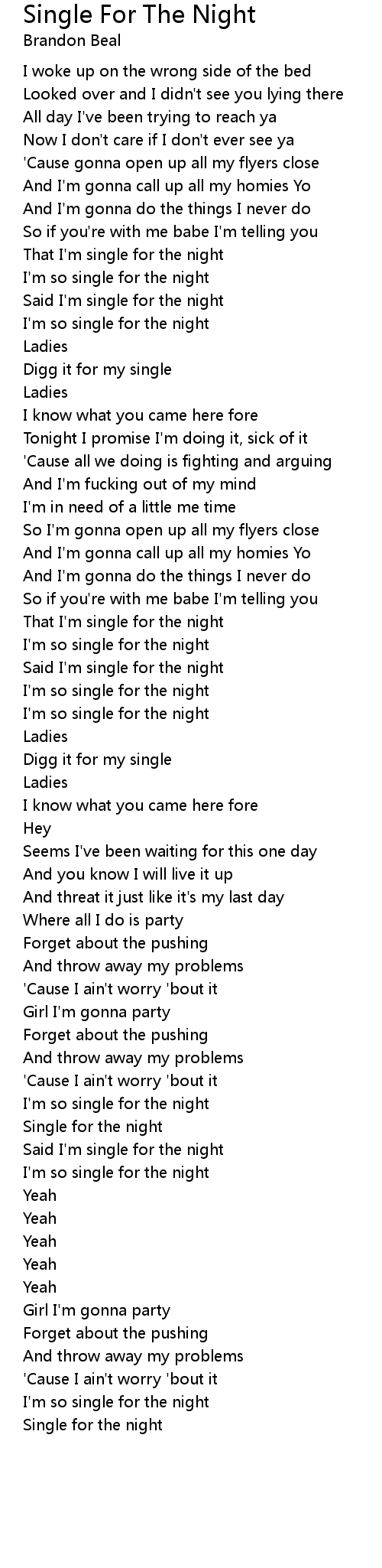 I'm so single for the night |