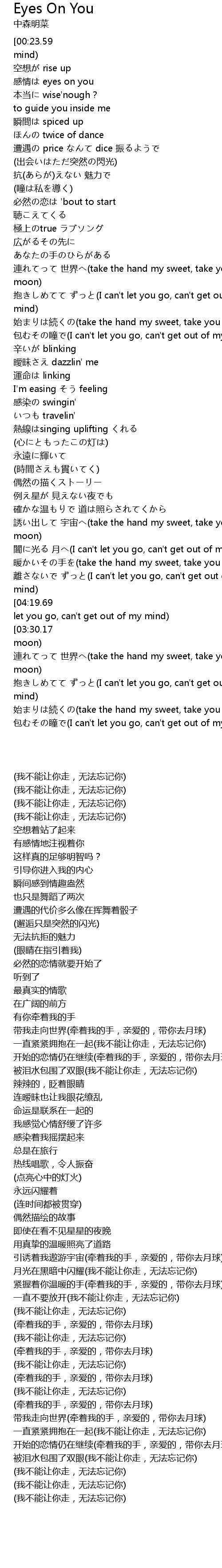 | [04:27.36][04:19.69][04:12.42][03:34.25][03:26.56][03:19.80][03:11.61] | (I can't let you go, can't get out of my mind) |