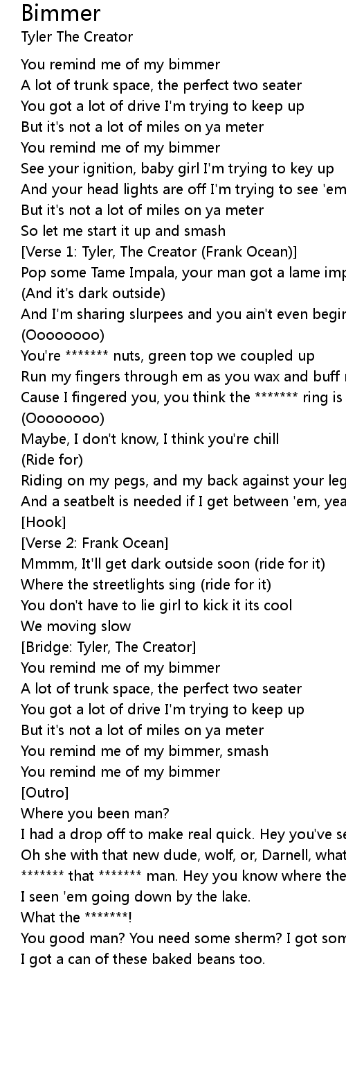 [Verse 1: Tyler, The Creator (Frank Ocean)] |
