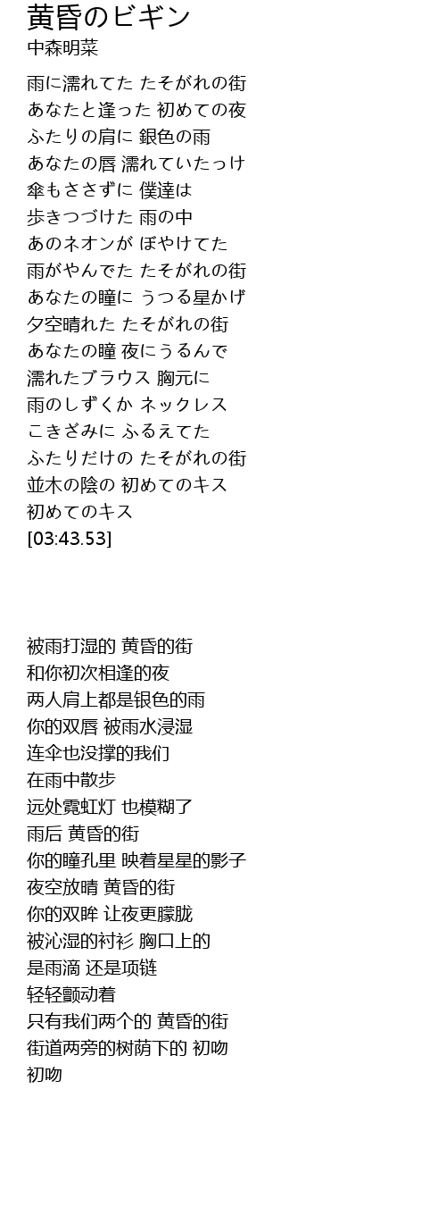 雨に濡れてた たそがれの街 |
