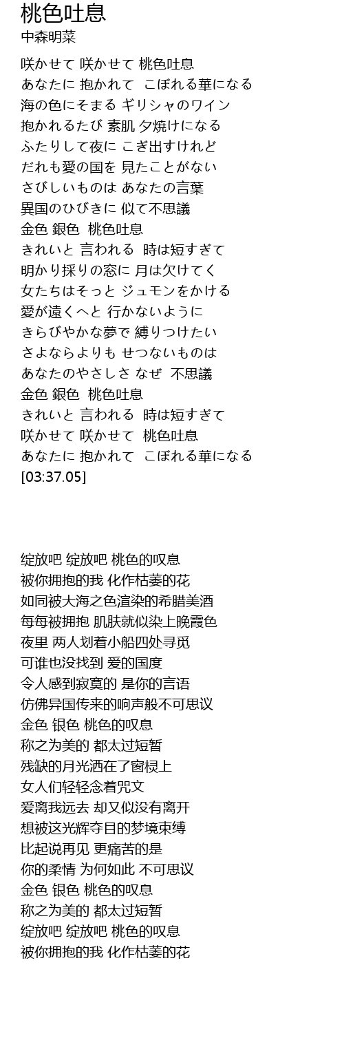 | Song | 桃色吐息 |