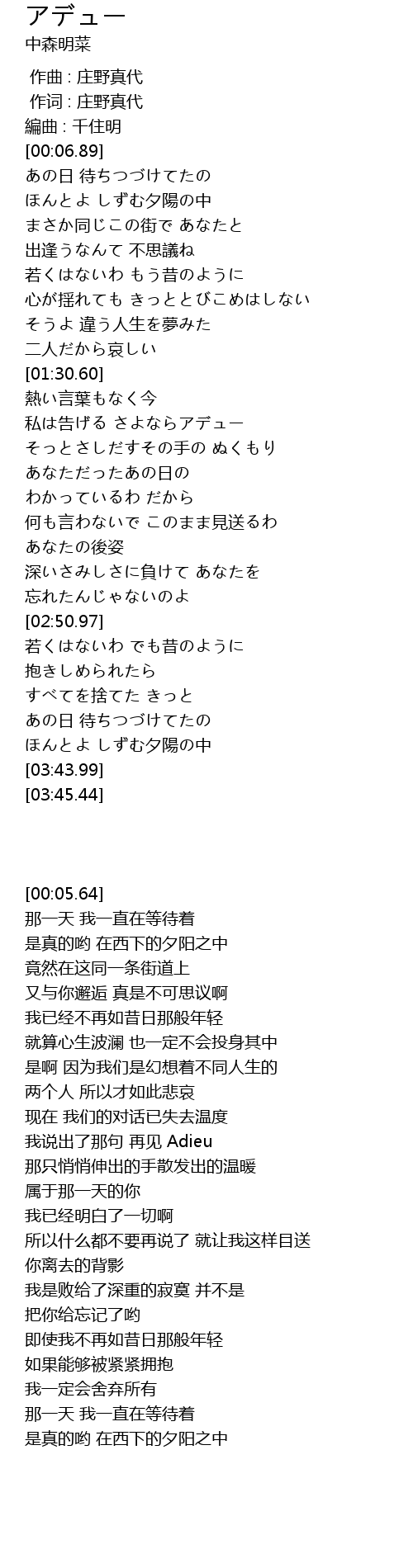 | [00:45.44] | 出逢うなんて 不思議ね |