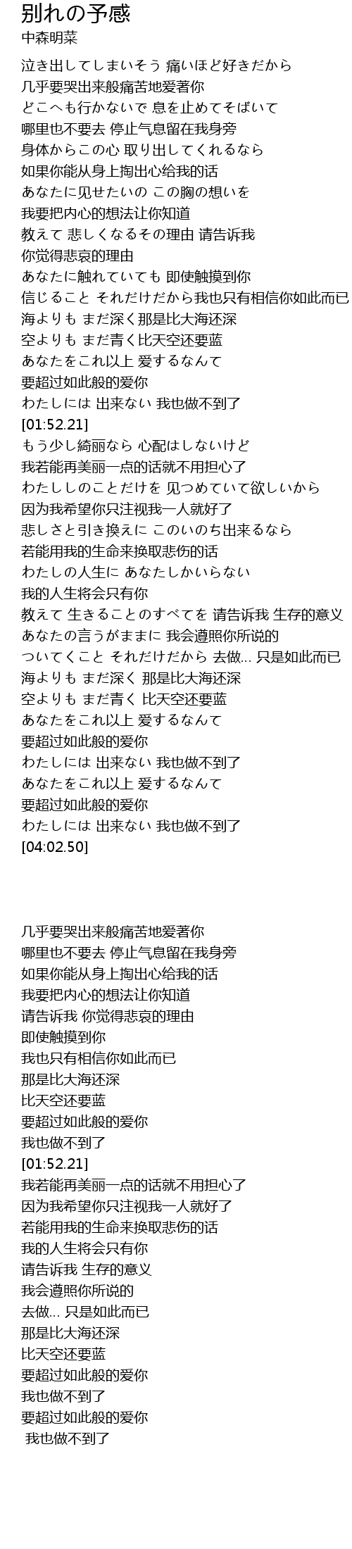 | [03:38.89] | あなたをこれ以上 爱するなんて 要超过如此般的爱你 |