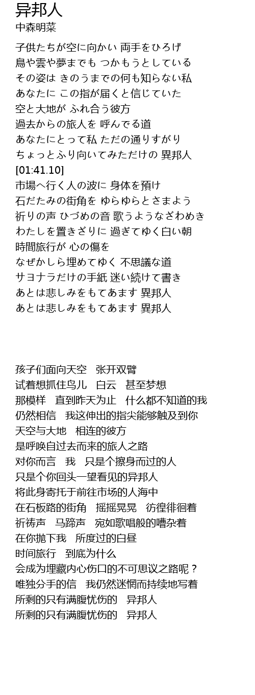 | [03:03.89] | あとは悲しみをもてあます 異邦人 |