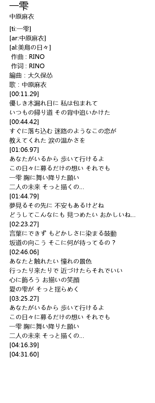 | [00:09.29] | 歌:中原麻衣 |