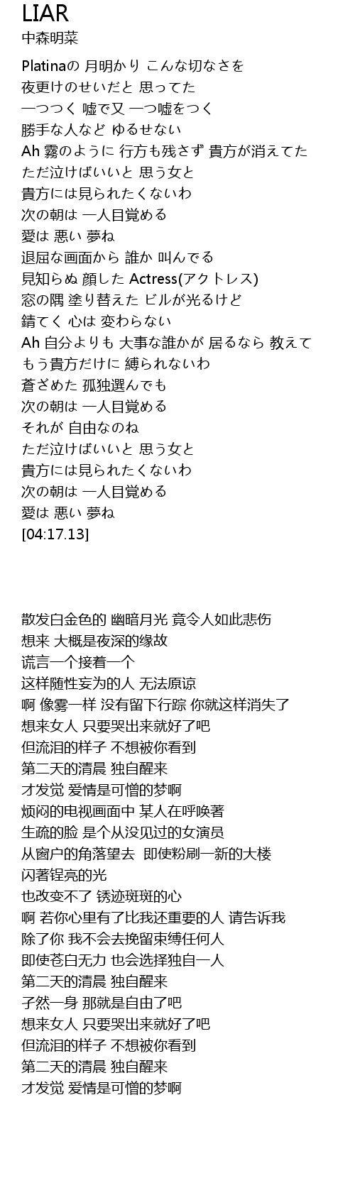 | [00:30.17] | Platinaの 月明かり こんな切なさを |