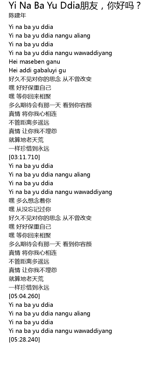 | [05:05.980] | Yi na ba yu ddia |