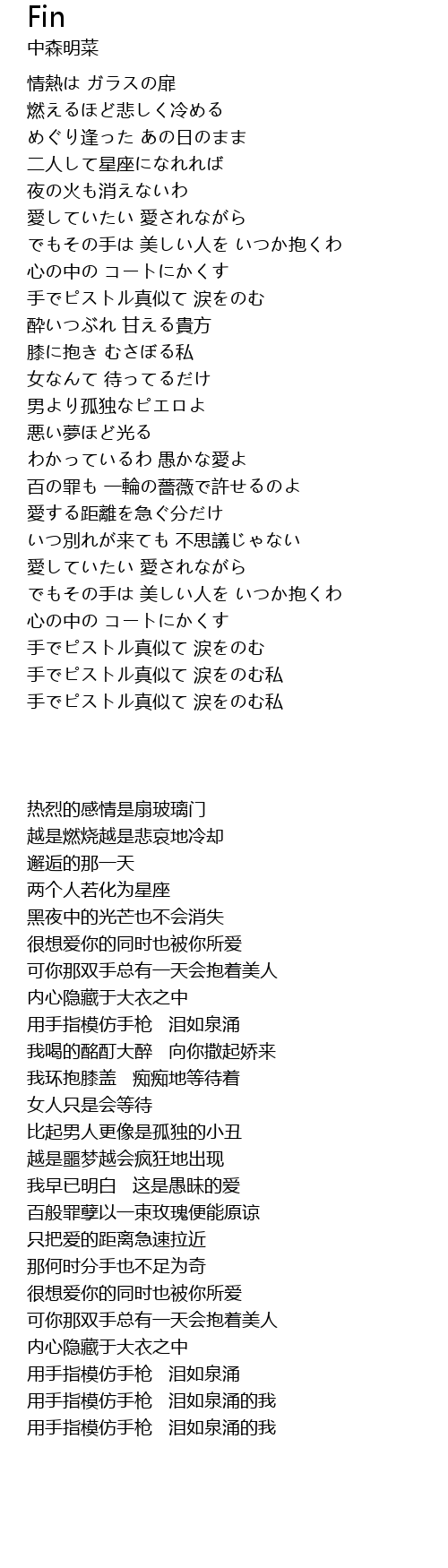 | [03:33.35] | 手でピストル真似て 涙をのむ私 |
