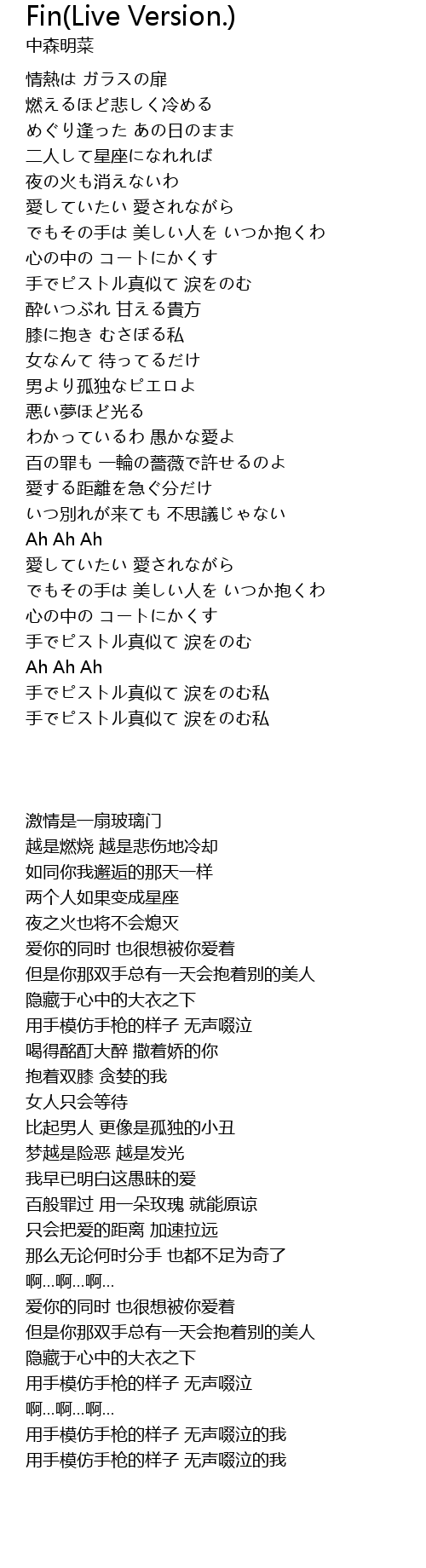| [03:33.860] | 手でピストル真似て 涙をのむ私 |