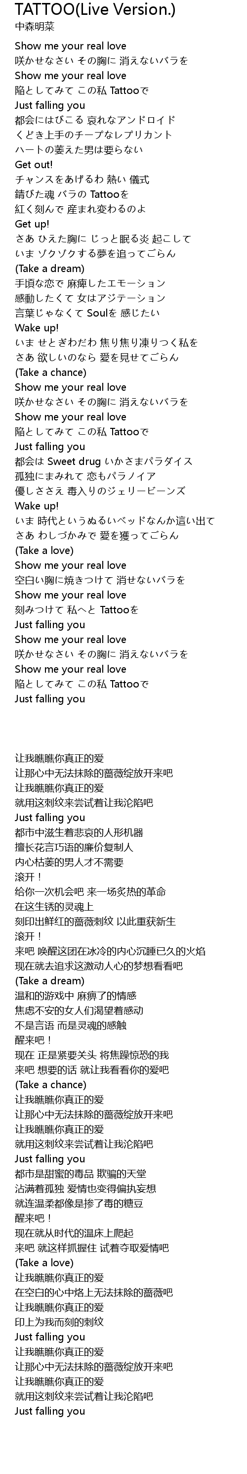 TATTOO(Live Version.) Lyrics