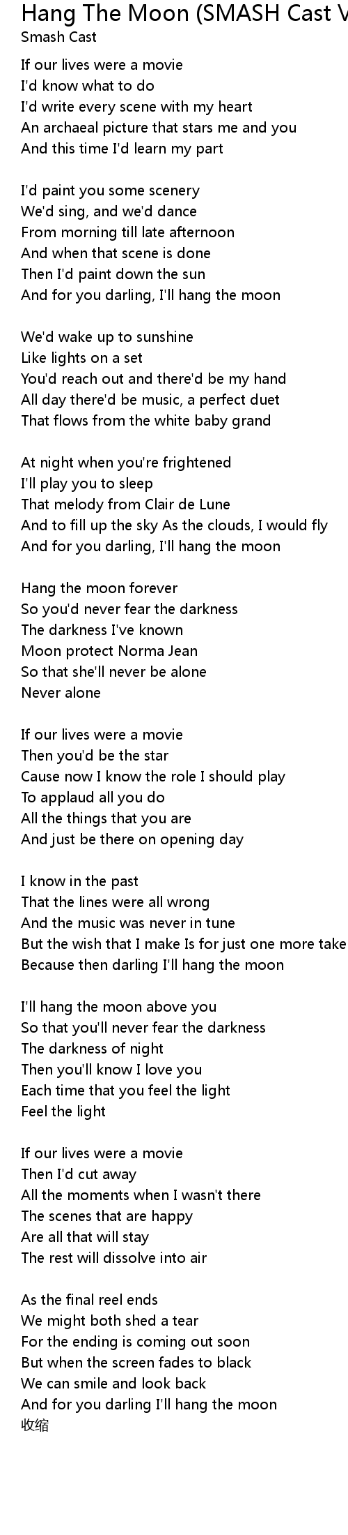 | Song | Hang The Moon (SMASH Cast Version) [feat. Bernadette Peters with Megan Hilty] |