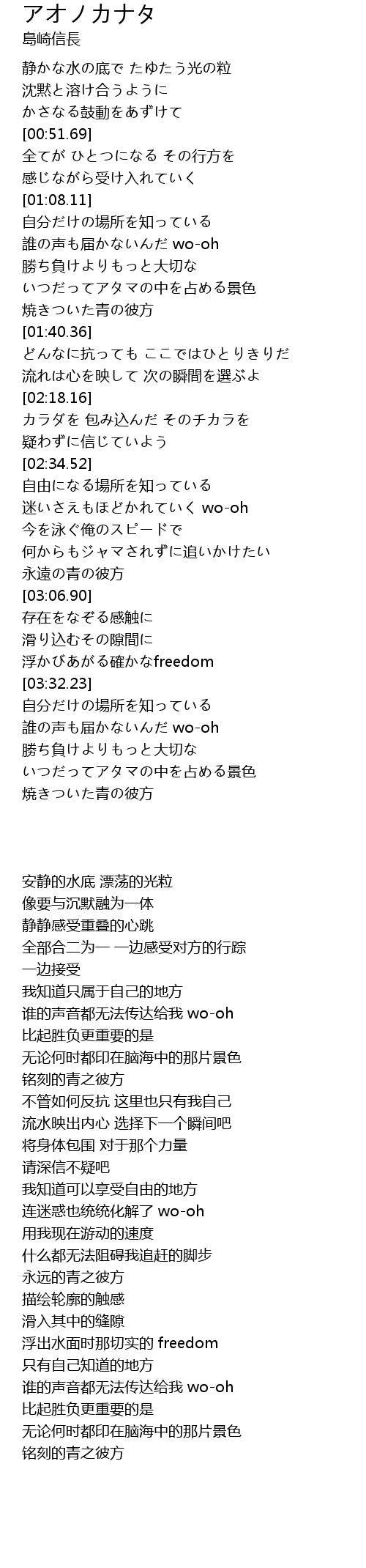 | [03:25.87] | 浮かびあがる確かなfreedom |