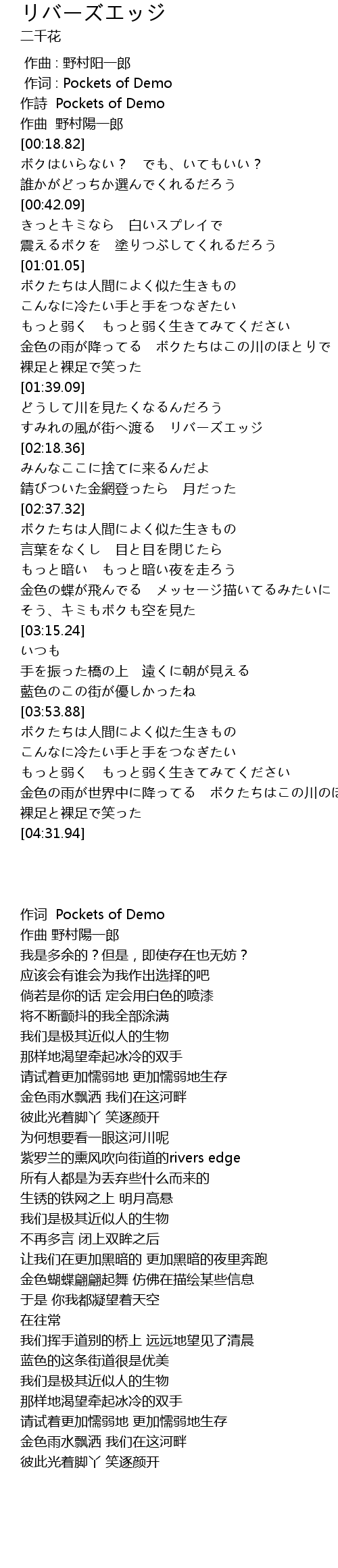 | [02:08.35] | すみれの風が街へ渡る リバーズエッジ |