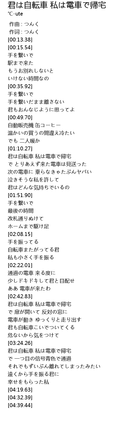 | [01:14.90] | 君は自転車 私は電車で帰宅 |