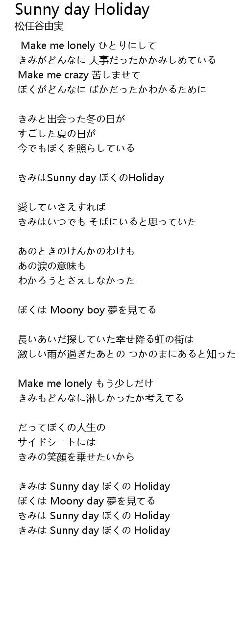 | Song | Sunny day Holiday |