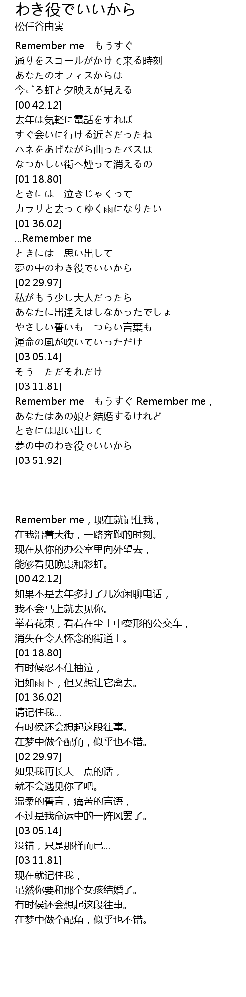 | [03:42.01] | 夢の中のわき役でいいから |