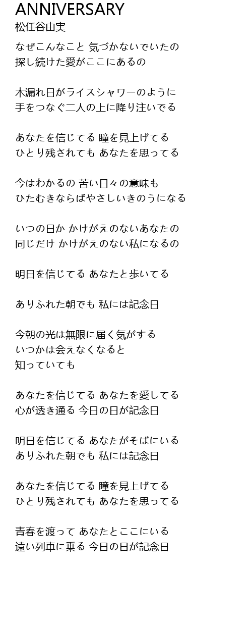 | Song | ANNIVERSARY |