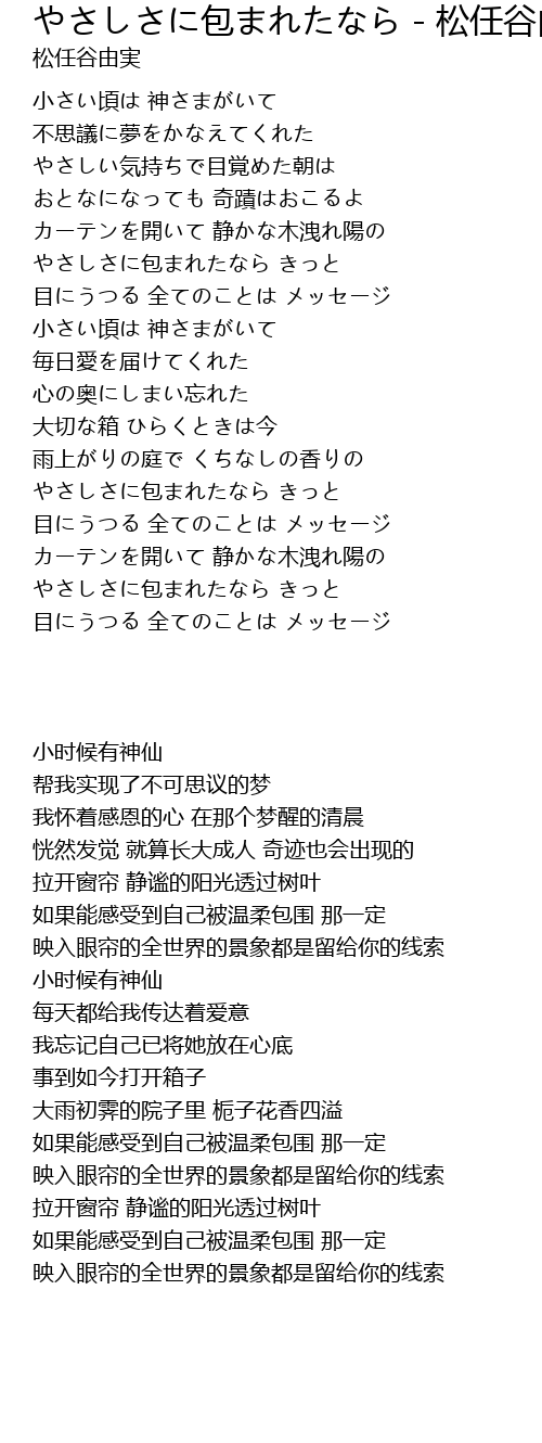 | [02:08.340] | やさしさに包まれたなら きっと |