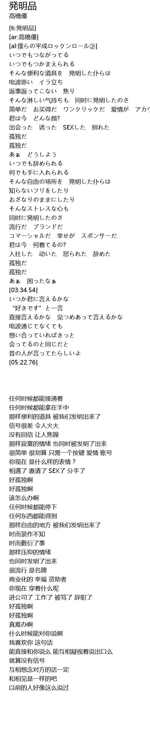 | [00:39.20] | そんな淋しい气持ちも 同时に発明したのさ |