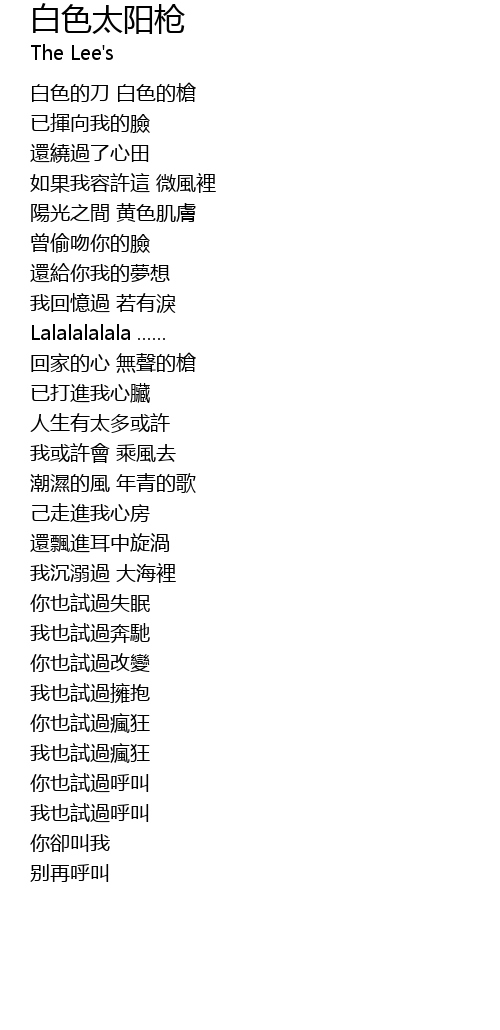 | [00:28.98] | 白色的刀 白色的槍 |