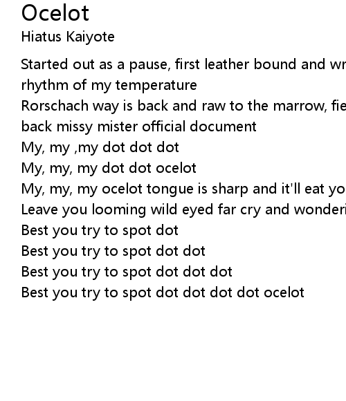 My, my, my ocelot tongue is sharp and it'll eat you up |