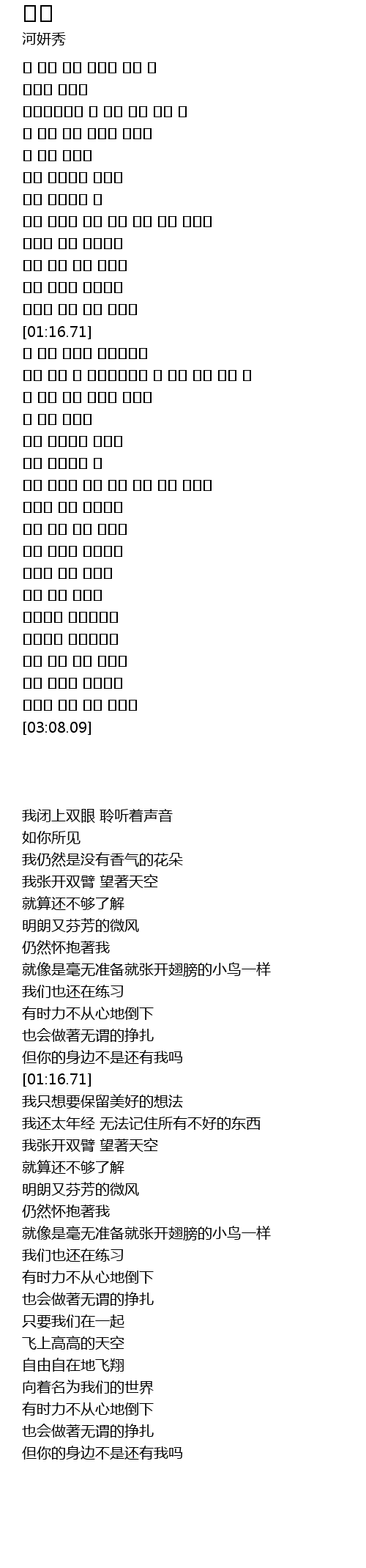 | [02:18.35] | 아무 준비도 없이 날개 짓을 하는 새처럼 |
