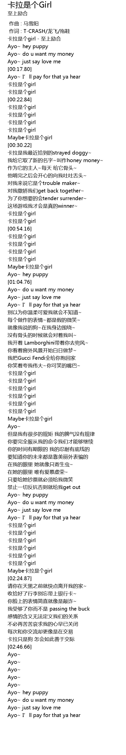 | [02:20.69] | 卡拉是个girl |