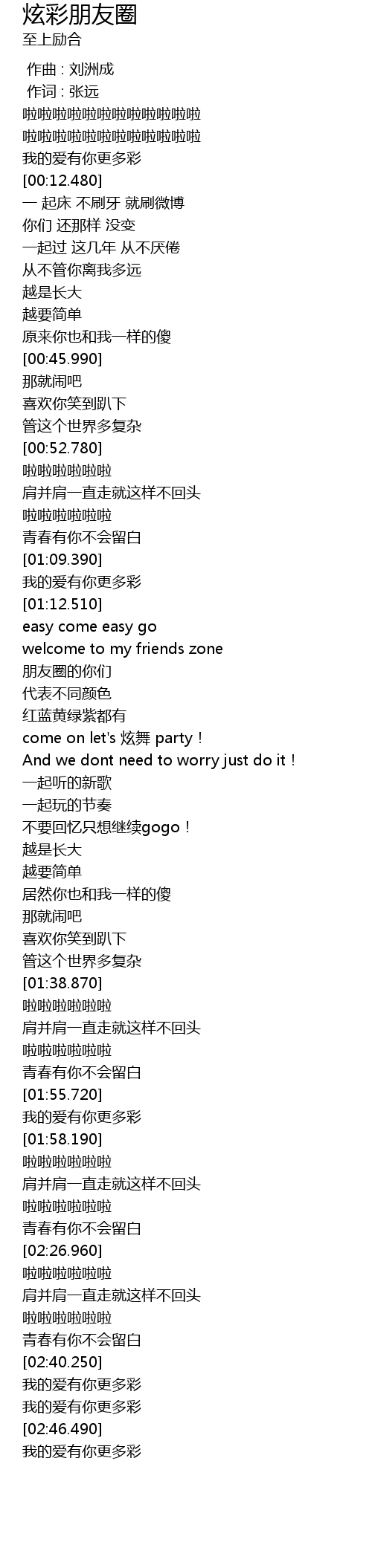| [01:16.440] | péng yǒu quān de nǐ men |