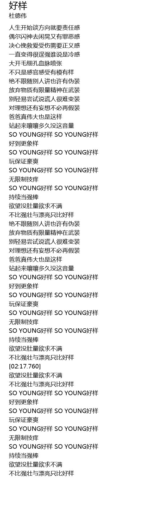| [02:04.360] | SO YOUNG好样 SO YOUNG好样 |